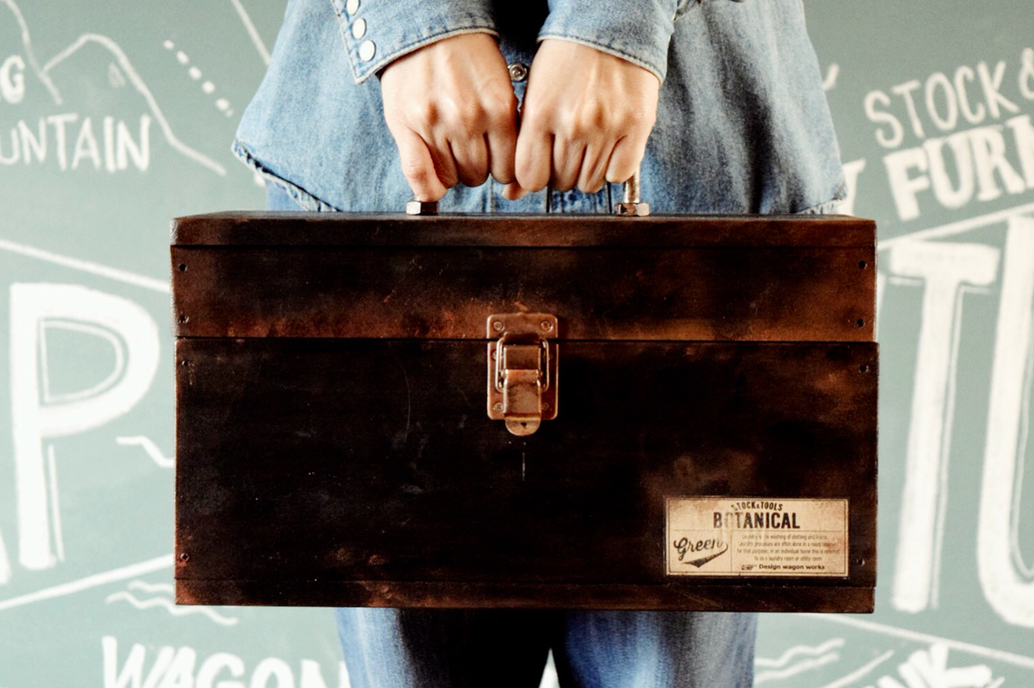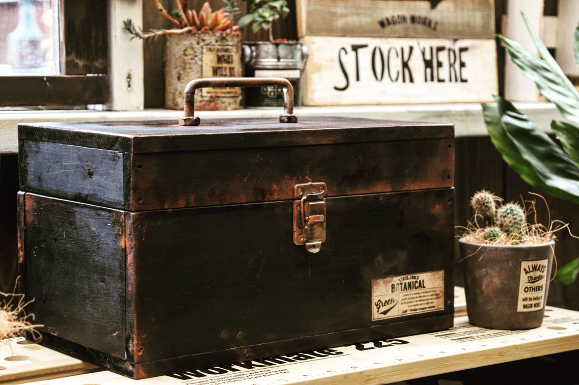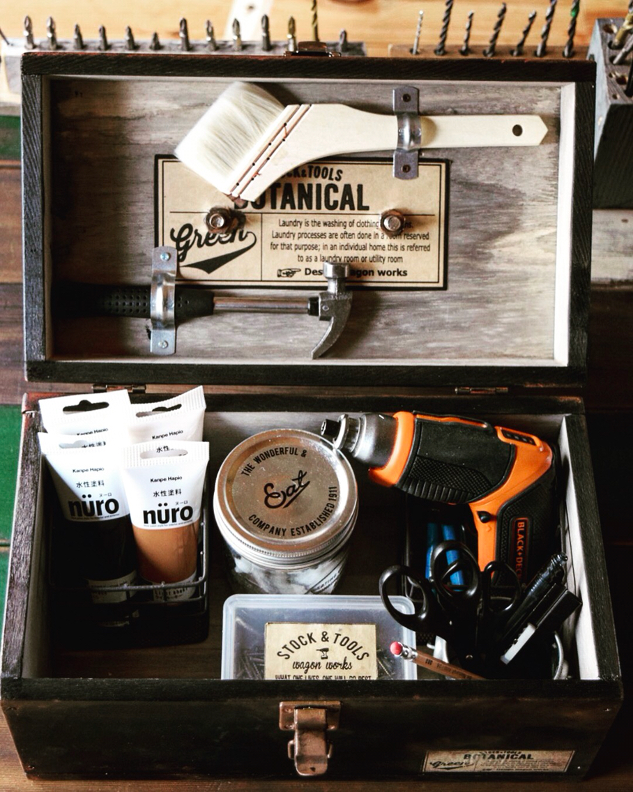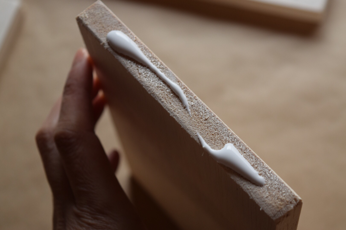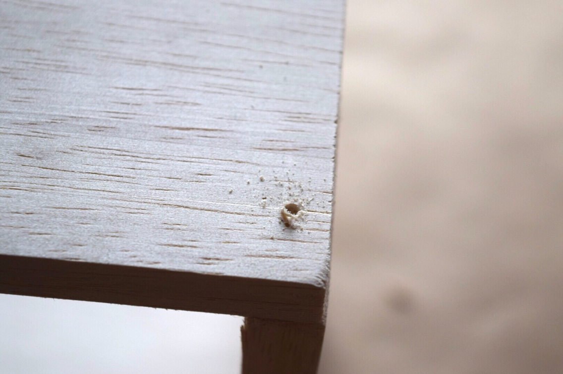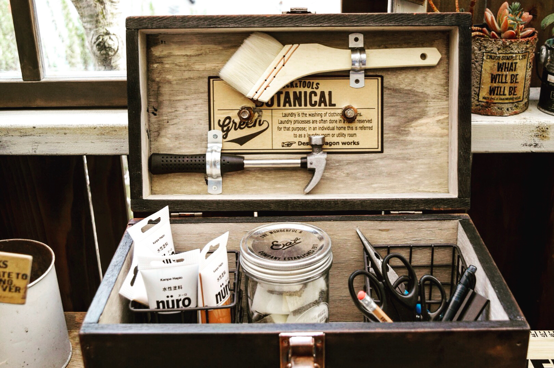 蓋と本体を繋ぐ蝶番とパッチン錠を取り付けします。