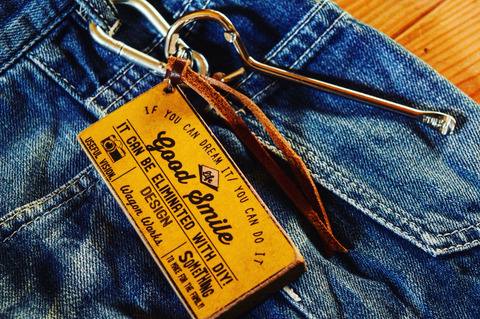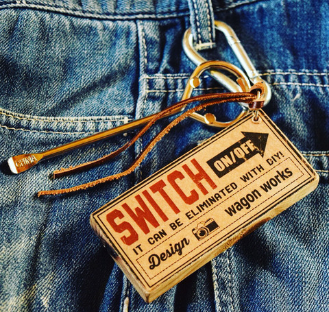 ペンキ缶オープナーのキーホルダーで、ウッドラベルは紙ヤスリなどをあてる木にしてね〜♪って感じです!