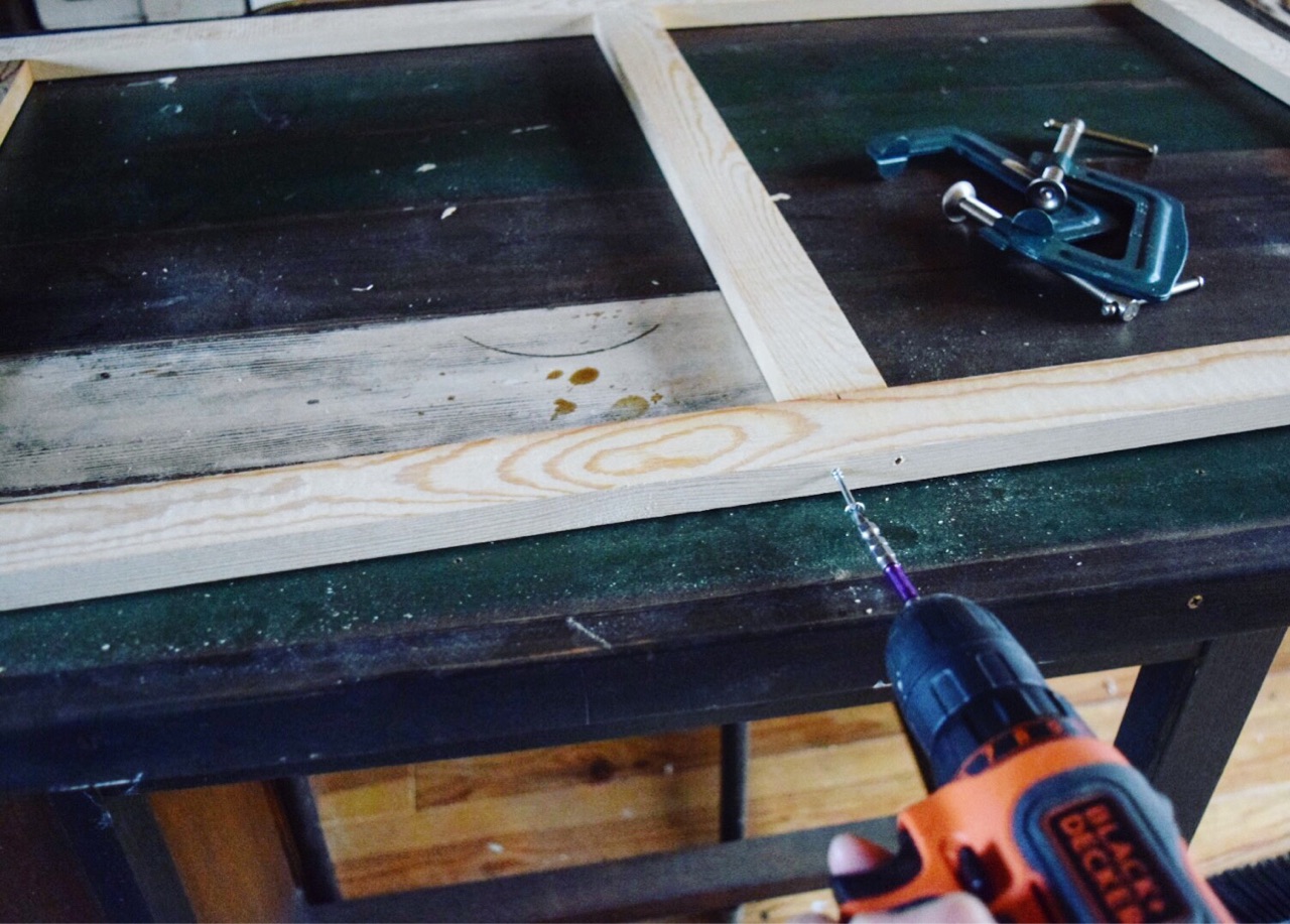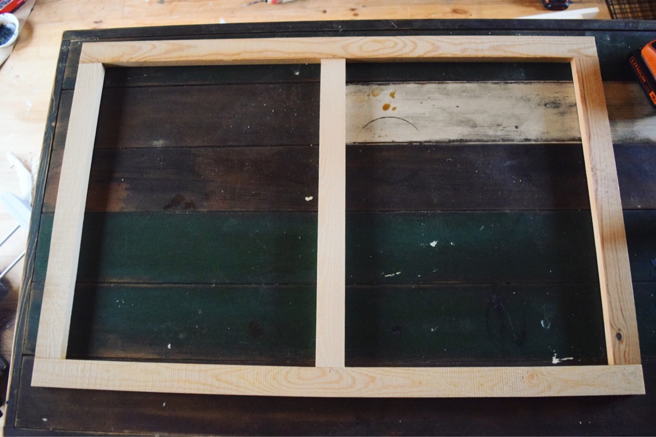 真ん中に桟の部分を同様にビスで固定します。
