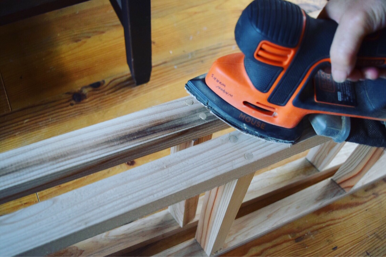 サンダーを使って全体をやすり掛けします。