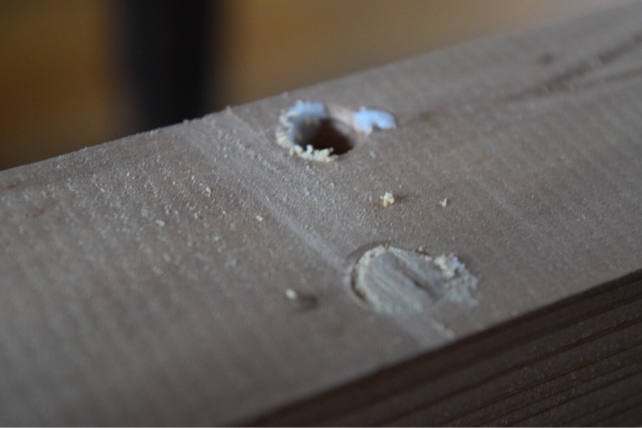 このダボ用の穴あけビットを使うと途中で止まるので、