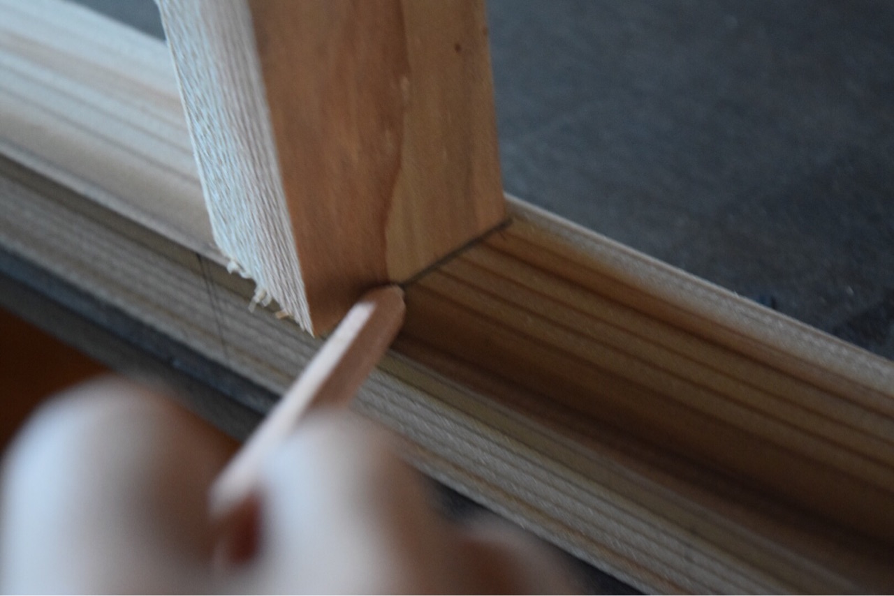 ダボ穴にボンドを入れて、