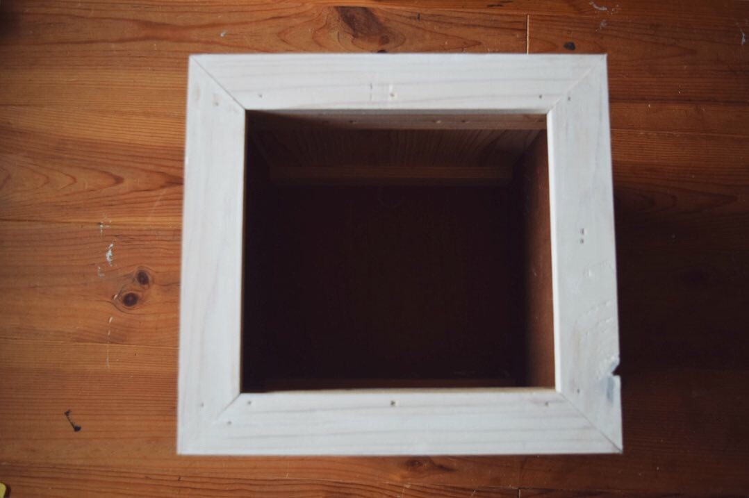 側板となる合板を杉板に固定して枠にします。