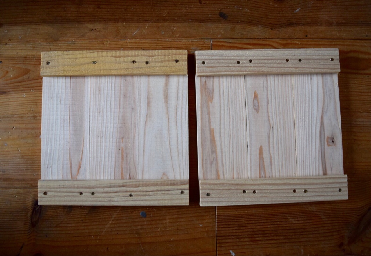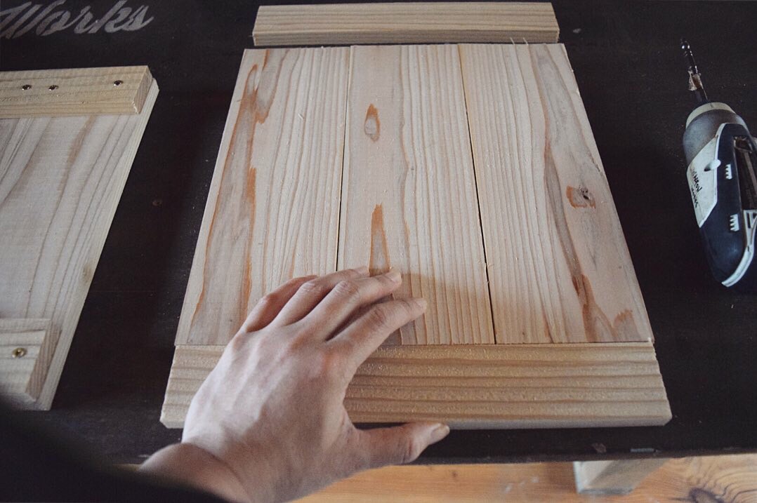杉板を3枚合わせて、桟の板上下でビスでとめます。