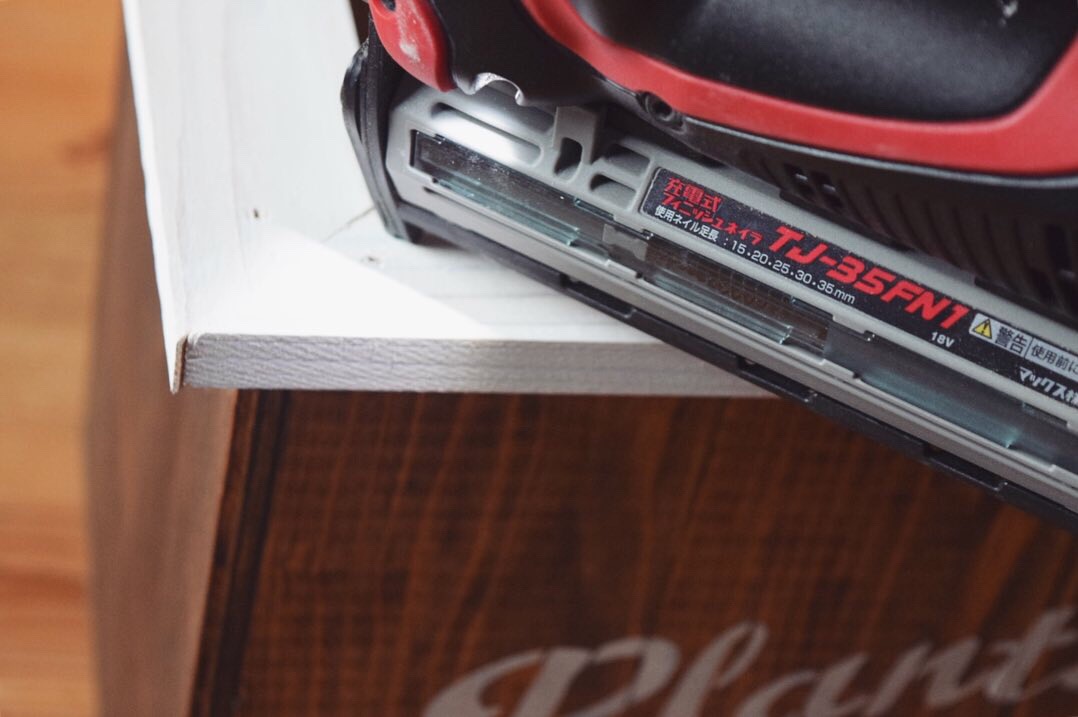 タッカーでプランターの口の部分にとめていきます。
