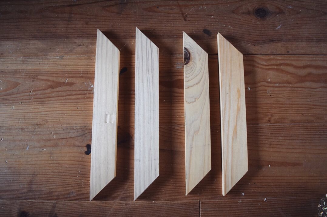 斜め45度にカットした板を、ポイントで白くペイントし、
