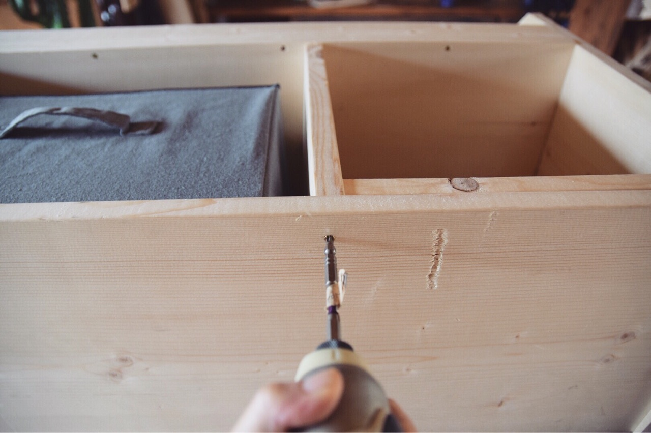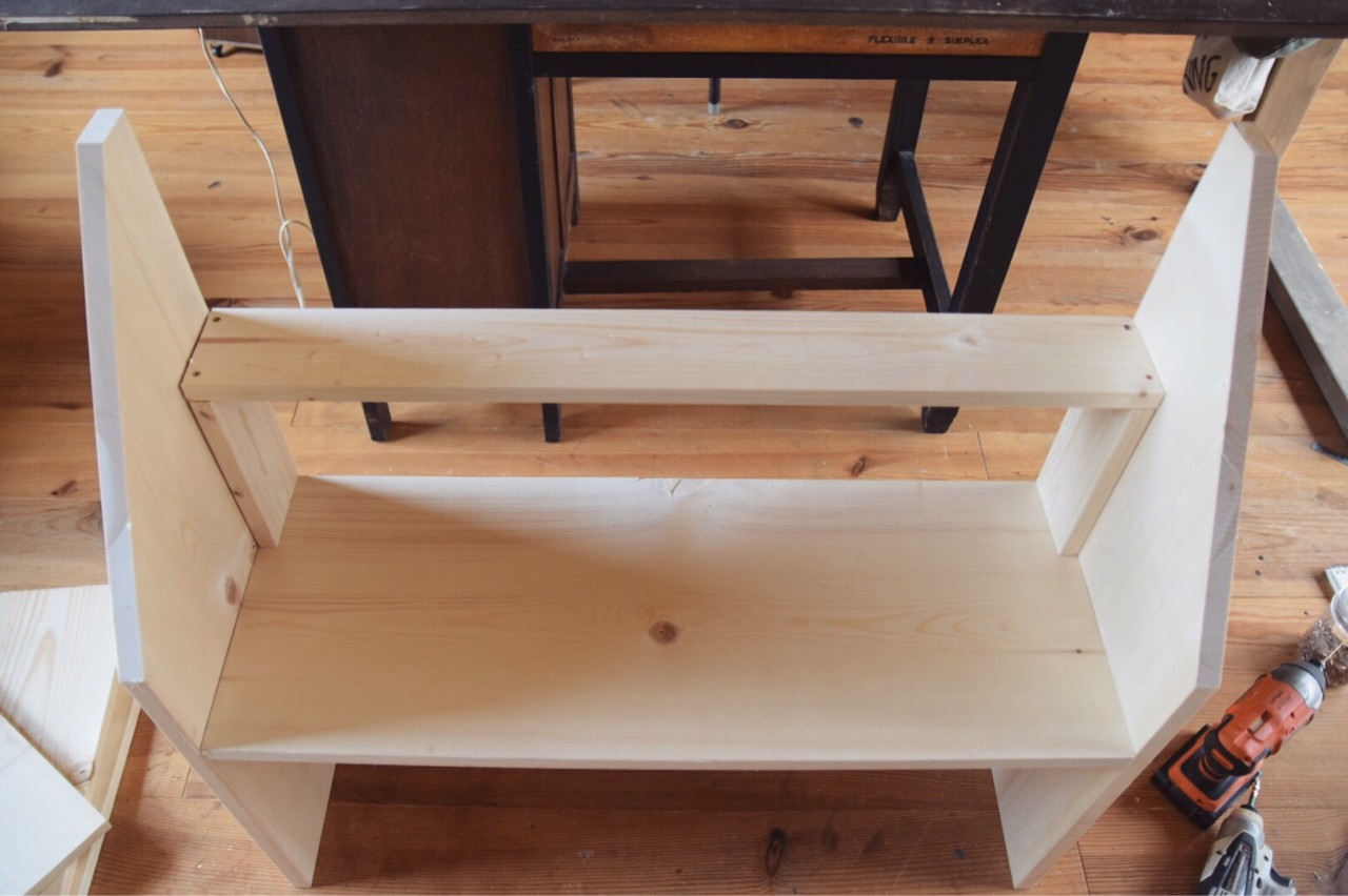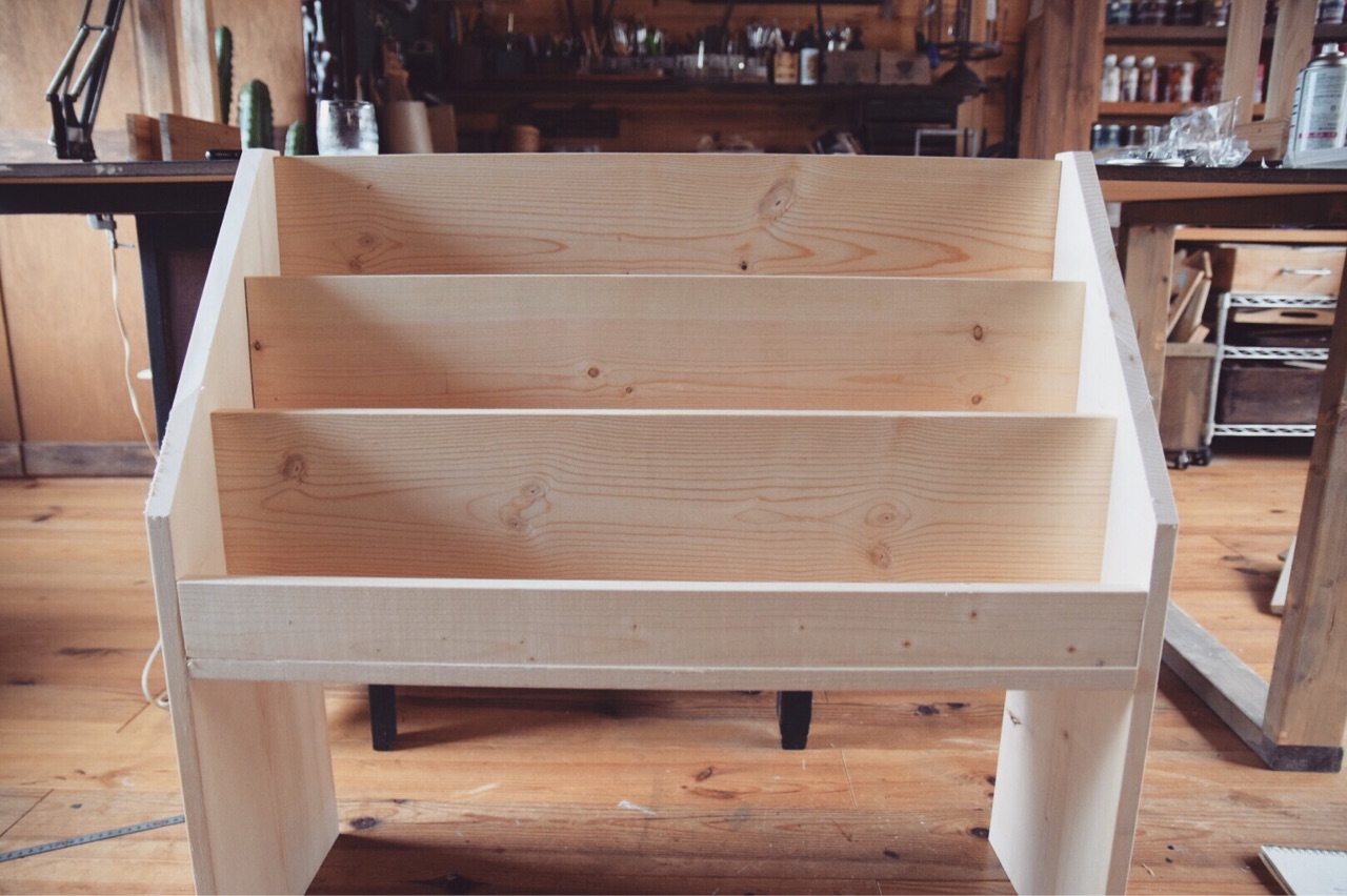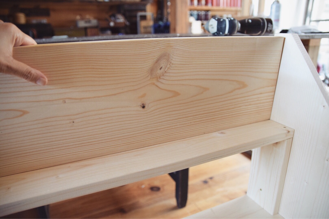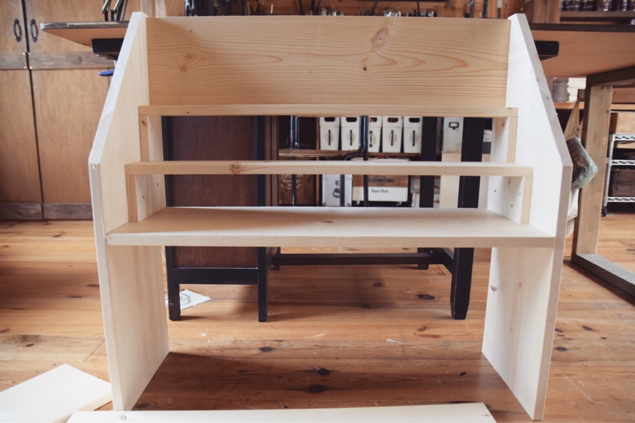 奥のひな壇の土台を背の面と同じ位置になるように置き、