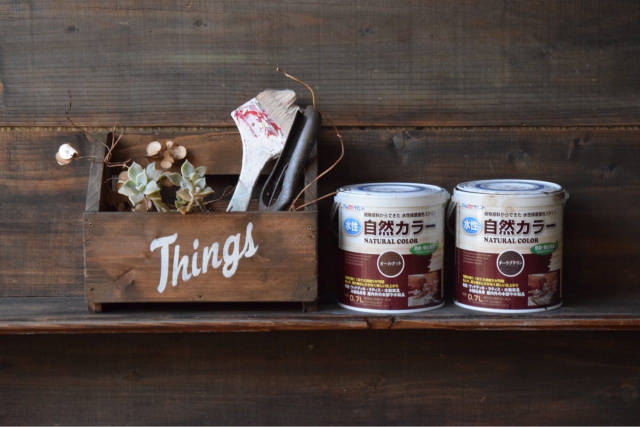 塗料はガーデン用のアサヒペンの自然カラーを使いました。