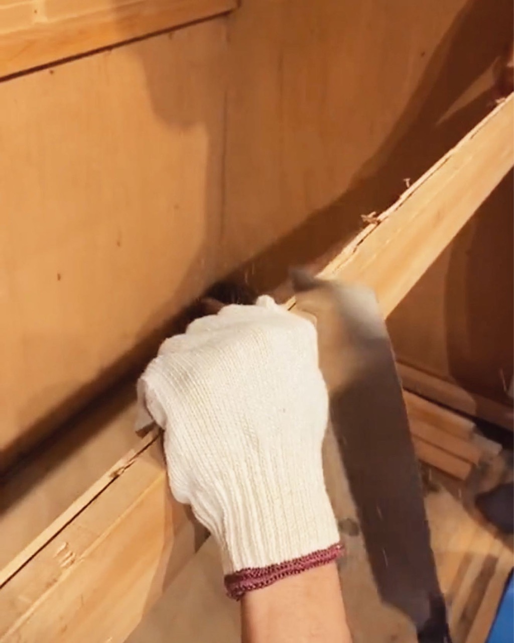 押入れ解体の後は、押入れのリノベに使用する家具を作りながら