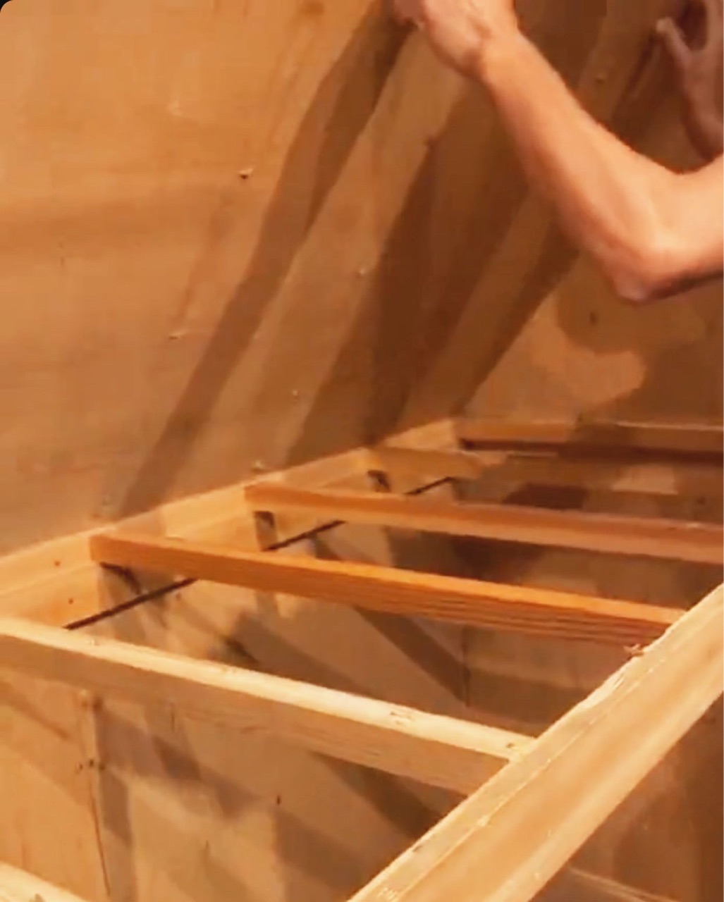 左右の壁に入りこんでいる部分は釘でとまっているので、