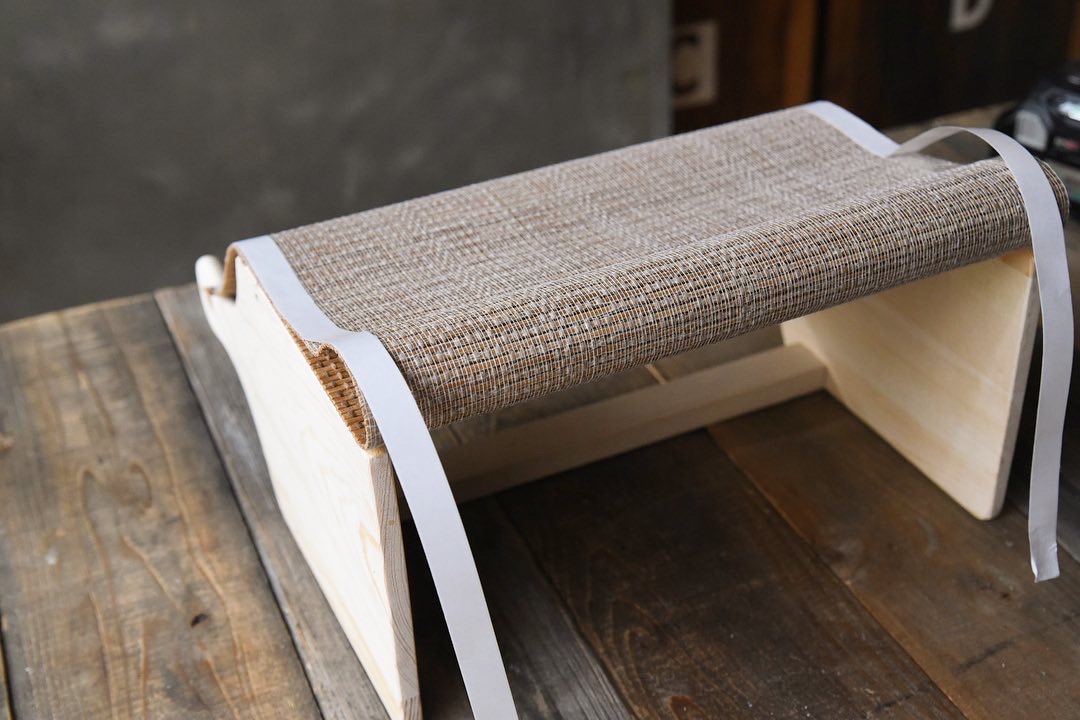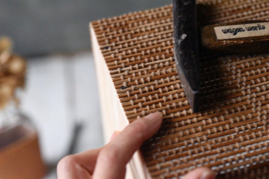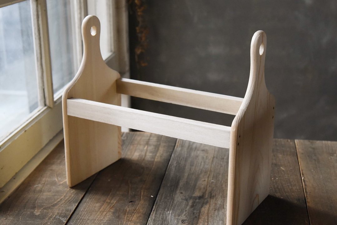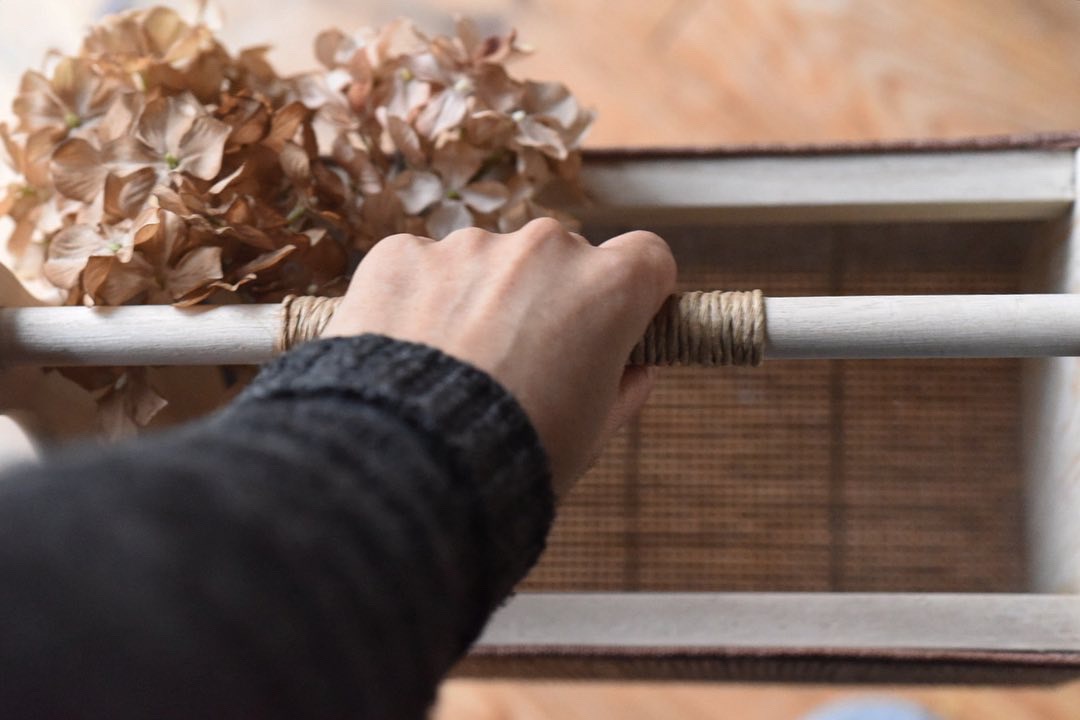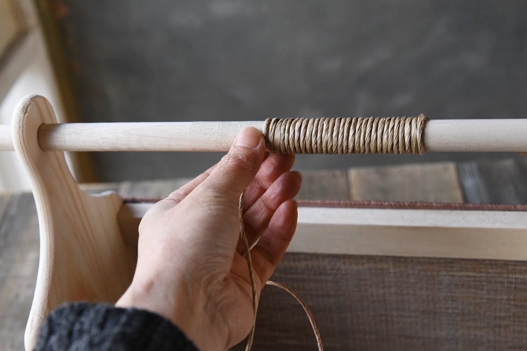 最後に持ち手になる丸棒を取り付けます。